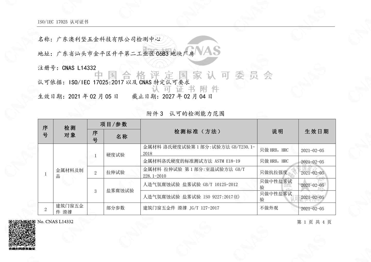 澳利堅公司獲得中國合格評定國家認可委員會頒發(fā)的實驗室認可證書,注冊號CNAS L14332