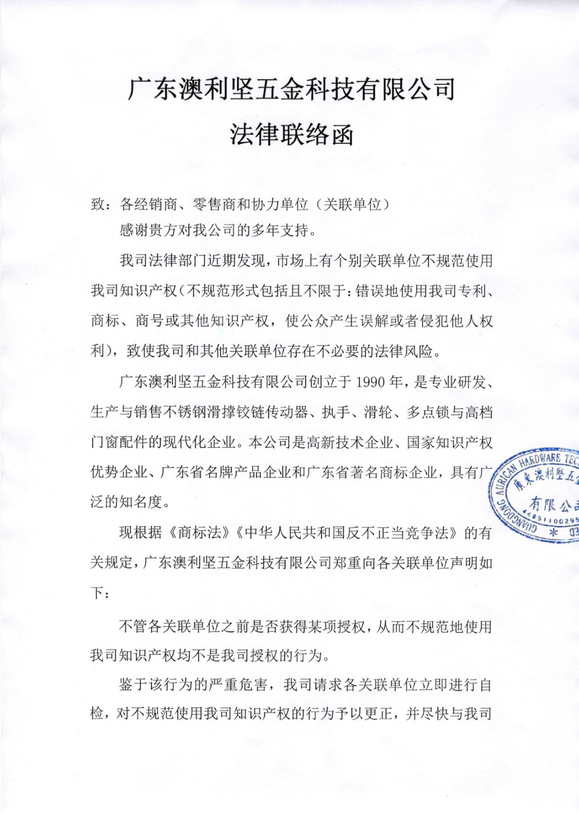 公司鄭重向各關(guān)聯(lián)單位發(fā)函聲明: